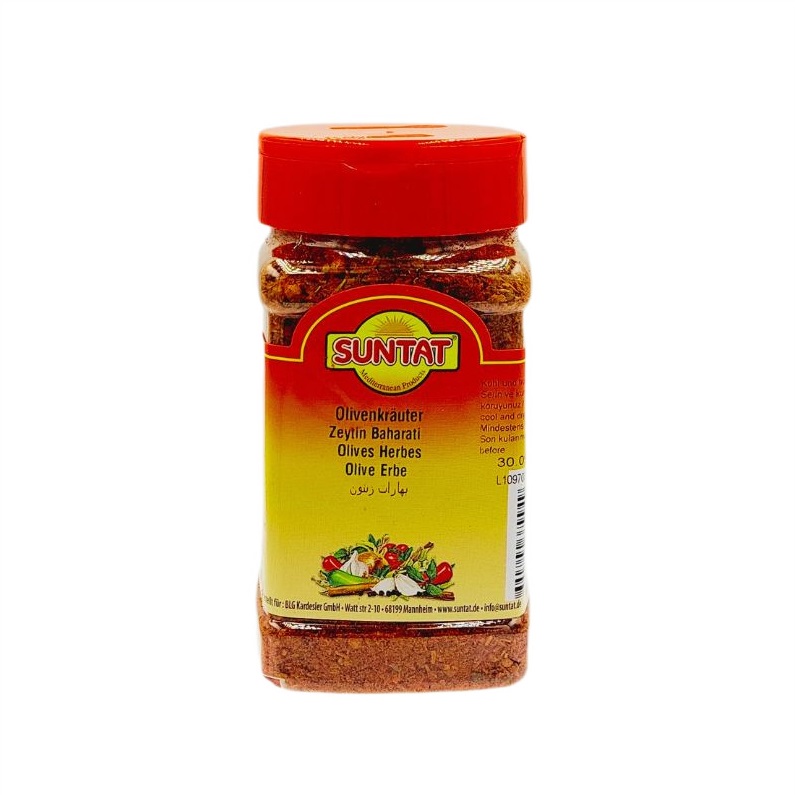 Nasza turecka przyprawa do oliwek to starannie dobrana mieszanka ziół i przypraw: oregano, papryki, rozmarynu, kolendry, sumaku, koperku oraz pietruszki.